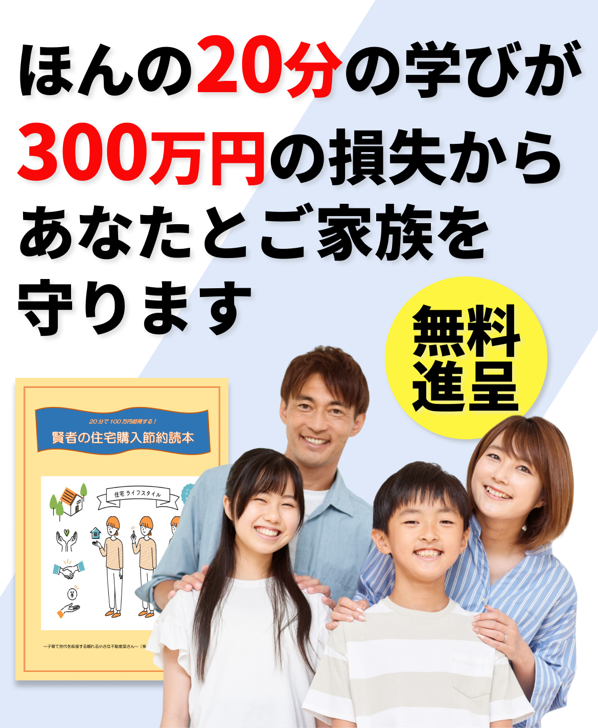 読むだけで無駄な支出を避け、理想の住まいを賢く手に入れるための判断力が身につくレポートとなっております。家を購入する前の不安を自信に変え、そしてあなたの強力な味方になりますので、ぜひご請求してみてください。
